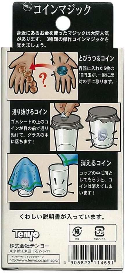 テンヨー(Tenyo) 手品 マジック NEWコインマジック コインマジック3種類 消える 通り抜ける とびうつる 初心者向け 6歳以上