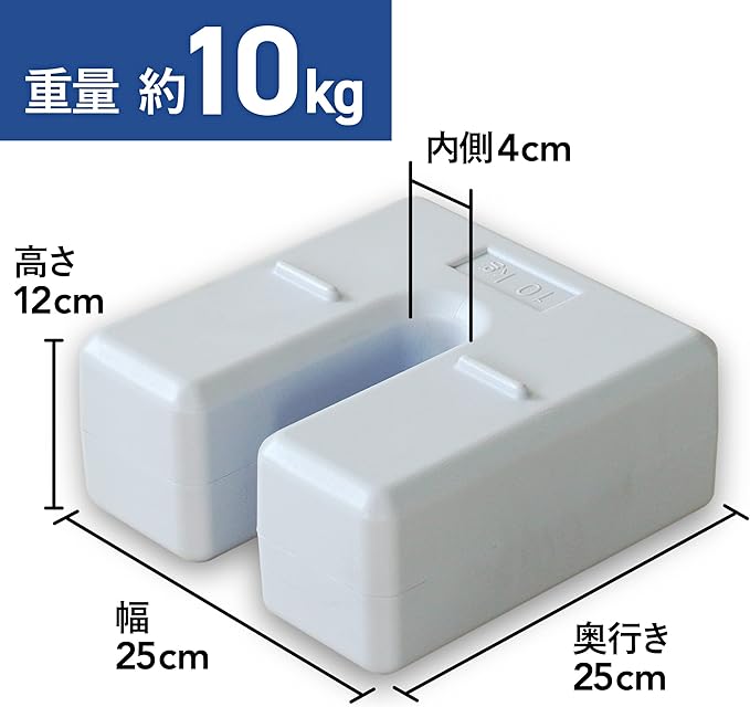 [ハンガーボード] 重り U型ベースウエイト 物干し台 看板 のぼり旗 転倒防止 10kg (ホワイト)