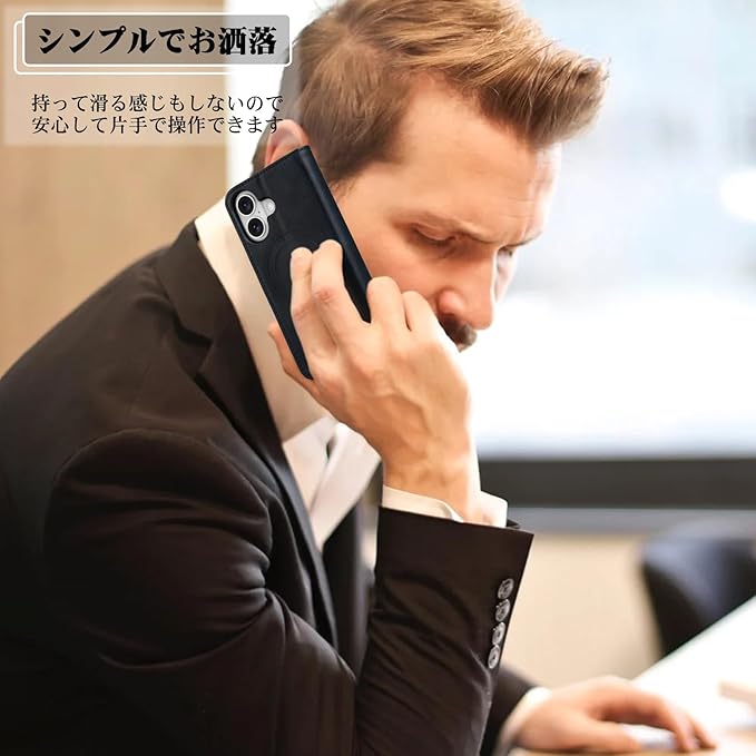 ビジネス専用ケース:衝撃吸収性と柔軟性に優れたTPU素材を採用し、画面より少しだけ高く設計されたコーナーが全周をカバーしているのであらゆる角度からの落下に対して安心感が増やしています。オシャレ大人のiPhone 16 Plus 用 手帳型ケースです。