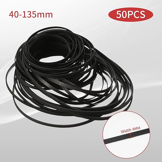 TEANTECH レコーダーラバーベルト カセットレコーダー 修理 メンテナンス ミックス フラット カセットテープ マシン ゴムベルト 40-135mm (50個) (幅4mm)