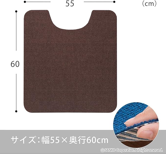 Sanko 【日本製 消臭 洗える】 サンコー ずれない トイレマット 床汚れ防止 おくだけ吸着 ビターブラウン 55 60cm KZ-12