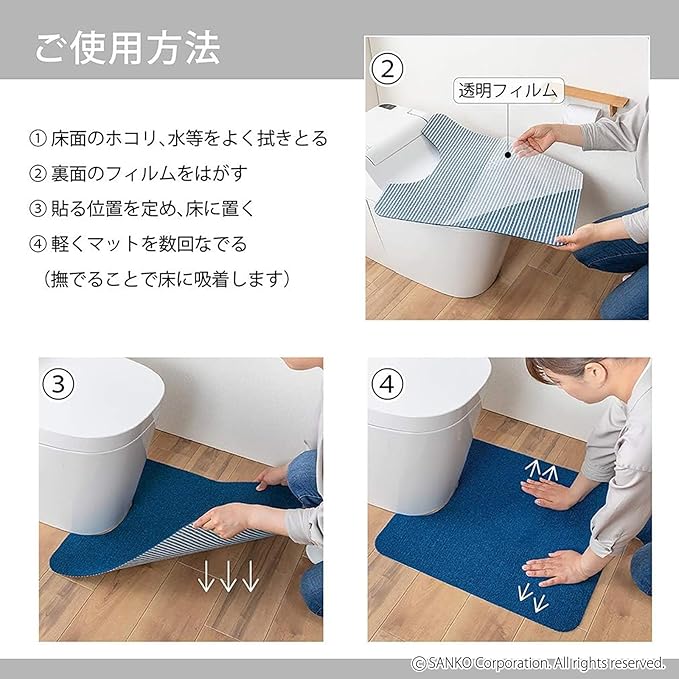 置くだけで、ずれない吸着タイプのトイレマットです。薄手タイプで、段差を感じない薄手タイプですので、マットにつまずいたり、引っかかったりしません。