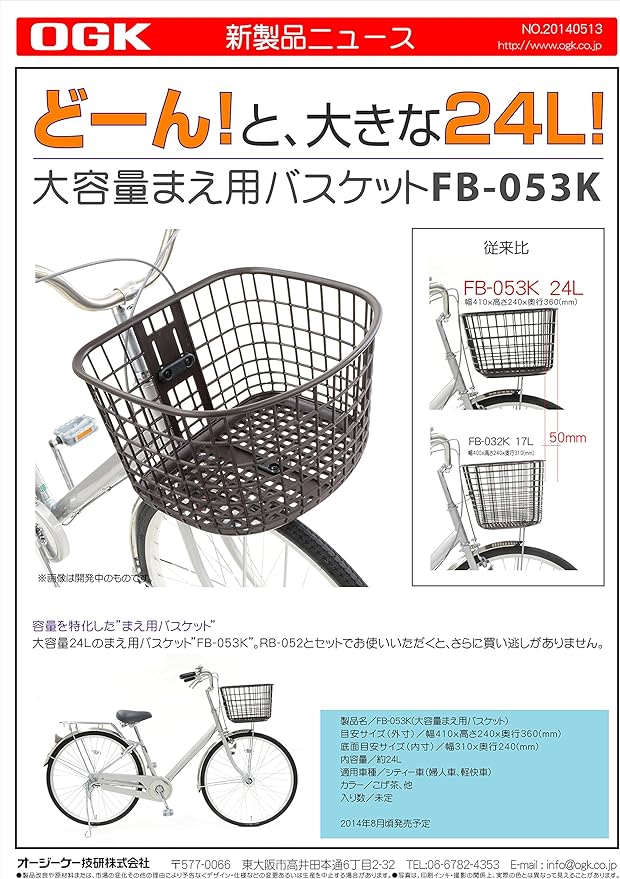 OGK技研 オージーケー技研 OGK技研 オージーケー技研 大容量前カゴ FB-053 K
