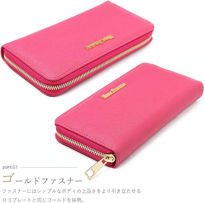 [ブランポム] 財布 ロゴプレート 長財布 レディース ラウンドファスナー シンプル bp-1001