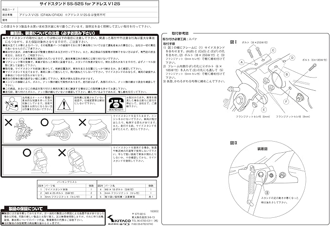 キタコ(KITACO) サイドスタンド SS-525 (メッキ) アドレスV125(CF46A/CF4EA) 656-2010525