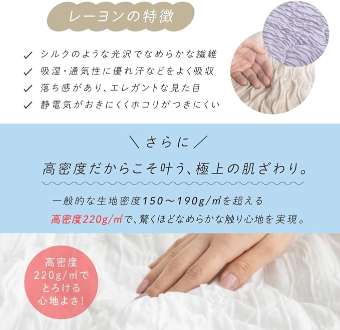 素材:上層/レーヨン100%・下層/ポリエステル95%・ポリウレタン5%・中綿/ポリエステル(マイクロわた)100%