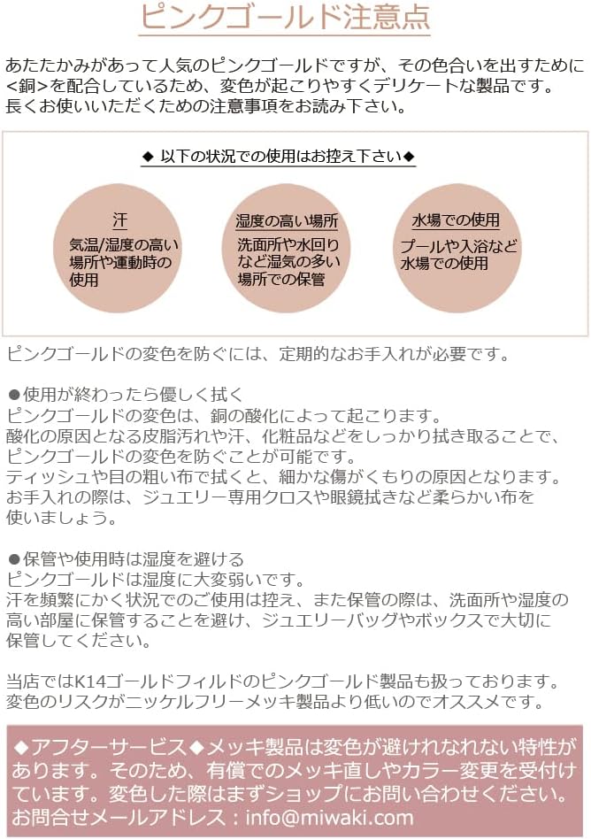 アレルギーの方にも安心なメッキを使用しています。