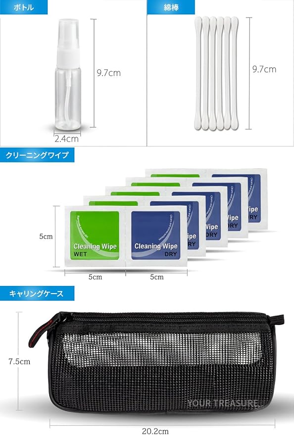 このクリーニングキットは、高密度繊維素材を使用しているため、ホコリや汚れを簡単に除去でき、カメラやパソコン、スマホなどの電子機器をきれいにすることができます。