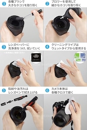 送風機を使用することで、レンズから汚れやホコリを効率的に吹き飛ばせられます。また、両面レンズクリーニングペンでは、レンズの表面についた汚れやホコリを簡単に取り除き、美しい画像を手軽に楽しむことができます。