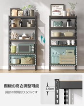 【棚板の高さは自由自在に調節可能】ポールにある3.5cm間隔の溝で棚板の高さが変えられるので、棚板の高さは自由自在に調節可能!また、本体は2つに分けて、ロータイプのラックとしても使用できるので、用途に応じた収納ができます。