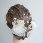 [Lomeri ロメリ] オーガンジーフラワー クリスマスローズ 髪飾り 白ゴールド 成人式 卒業式 七五三 浴衣 結婚式 前撮りM33(ゴールド)