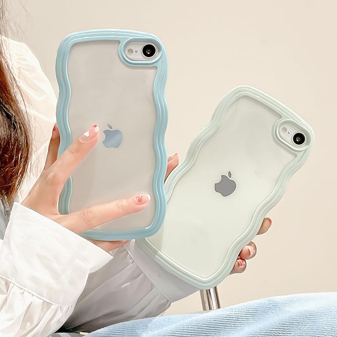 QLTYPRI iPhone 16e 用 ケース クリア TPUカバー おしゃれ 韓国 可愛い 透明 薄型 軽量 耐衝撃 スマホケース ワイヤレス充電対応 ストラップホール付き アイフォン16e ケース 6.1インチ 対応 - ブルー