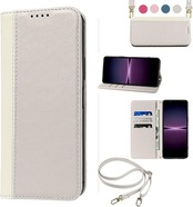 Xperia 1 V ケース 手帳型 高質PUレザー Xperia 1 V SOG10 ケース SO-51D カバー XQ-DQ44 携帯カバー 肌感のよ 二色組合せ 耐衝撃 肩掛け 首かけ 斜めがけ ショルダー ケース 皮革 耐汚れ 内蔵マグネット開閉式 スマホケース おしゃれ カードポケット スタンド機能 人気 財布型(ブラウン+ホワイト)