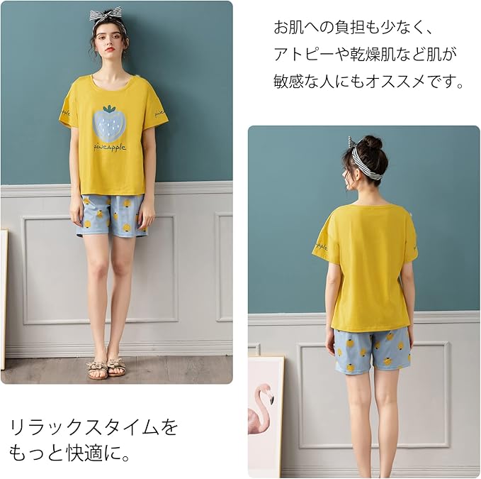 [HACAI] パジャマ レディース ルームウェア 綿100% 前開き 部屋着 可愛い 寝巻き 寝間着 上下セット 吸汗通気 肌に優しい 春夏秋 柔らか