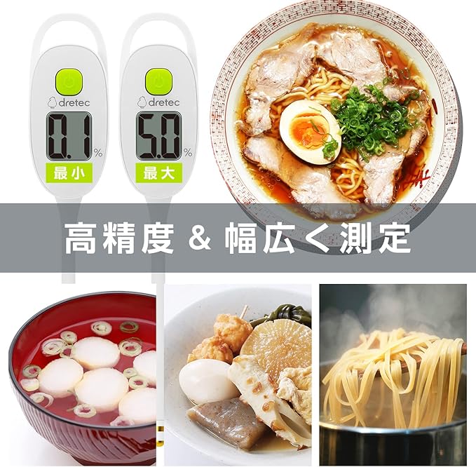 ドリテック(dretec) 塩分濃度計 防水(IPX7)だから丸洗いできる 0.1%単位/最大5%まで計測 大画面で文字が見やすい 塩分計 減塩 塩分計測器 水槽 減塩グッズ