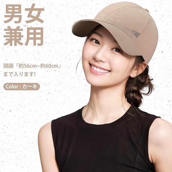 【メッシュのデザイン】キャップ全体は通気性と速乾性に優れた軽薄メッシュデザインで、帽子をもっと軽く、長時間かぶっても束縛感がありません。通気性が抜群で、夏場の暑さやスポーツで汗をかいても、サラサラと快適の状態を保て、長時間使っても快適で気持ちがいいです。