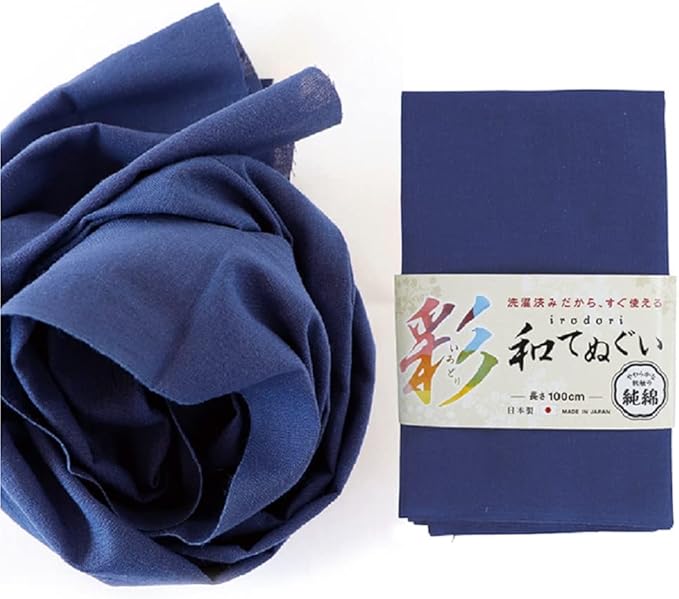 福徳産業 手ぬぐい 無地 綿100% 紺色 ネイビー 33 100cm 日本製 すぐ使える 柔らかい 彩和手ぬぐい 1枚入
