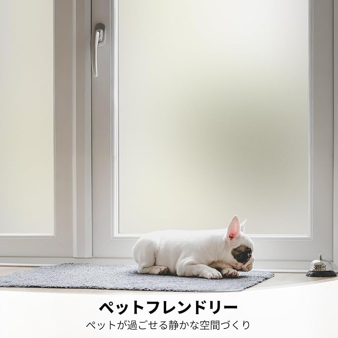 【貼付け / 剥がし簡単】窓ガラス目隠しフィルムの貼り付け方法はガラスフィルムについた保護フィルムを剥がし、水で貼るだけです。接着剤等一切使わないことで、剥がし簡単、環境にやさしいです。何度でも貼ってはがせる再利用可能。【ご注意】●必ずガラスフィルムについた保護フィルム(不要なフィルム)を剥してください。この手順をスキップすると、貼ったガラスフィルムが剥がれ落ちてしまうので、ご注意くださいませ。●任意の滑らかな表面に適用できます。粗いまたは多孔性の表面には適用されません。