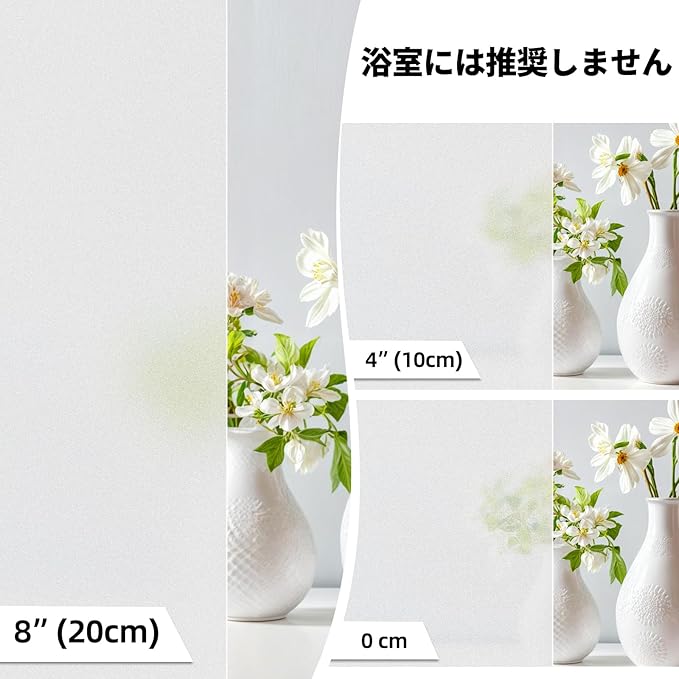 【目隠し / プライバシー対策】20cm以上離れていれば、天気や昼夜を問わず、室内を見えにくくする窓ガラス目隠しフィルム、かつ、採光性が抜群。無カーテン化で部屋がすっきりして広くになります。家庭の窓、ガラス引き戸、オフィス、会議室、浴室、フランス窓などに幅広く適しています。