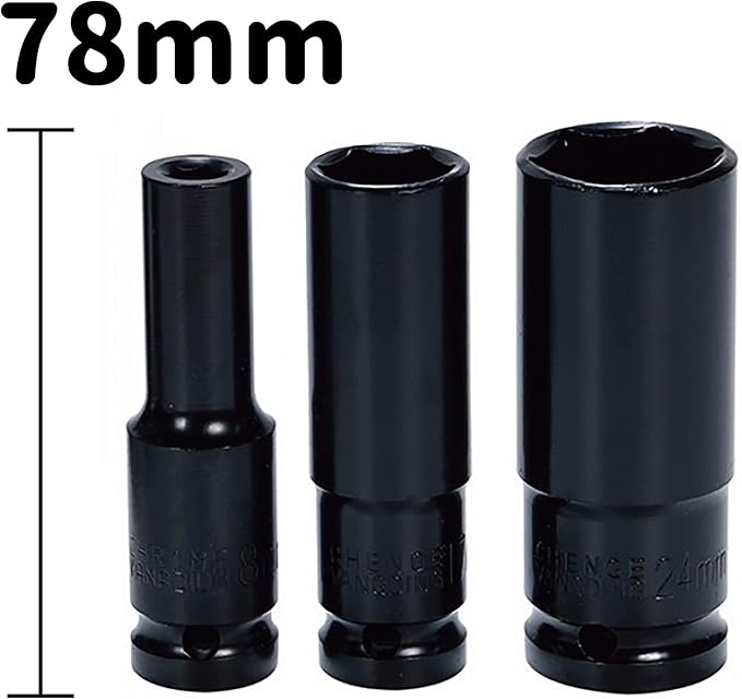 Lanx.12.7mm 1/2インチ ディープ ソケット 10本セット 8mm~24mmサイズ ロング 延長 ラチェット インパクト レンチ 用 工具セット (8mm~24mmサイズ 10本セット)