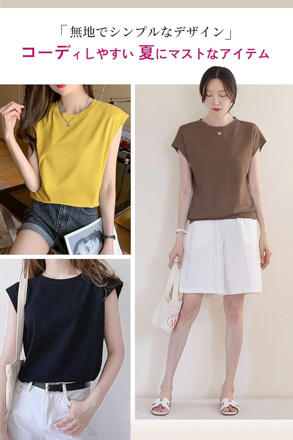 [Mmlnrc] Tシャツ レディース ノースリーブ タンクトップ クルーネック 速乾Tシャツ ゆったり 着痩せ効果 トップス 夏服 無地 フレンチスリーブ カットソー 重ね着 丸首 柔らか おしゃれ 可愛い カジュアル 通勤 デート 夏 ゆるT