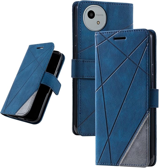 UnivoColors SHARP AQUOS Wish4(SH-52E)手帳型ケース 対応 ギャラクシー 財布型カバー カード収納 ストラップ付き スタンド機能 マグネット開閉 軽量TPU 横置き機能 スマホケース 防指紋 レンズ保護 落下防止 全面保護(ブルー)