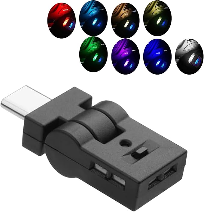Juckier USBライト 車内用 LED 照射方向切替/180 首振り/自動点灯/RGB8色 メモリー機能搭載 アンビエントライト 小型軽量 簡単取付 USB給電 車アクセサリー Type-C 1個入り
