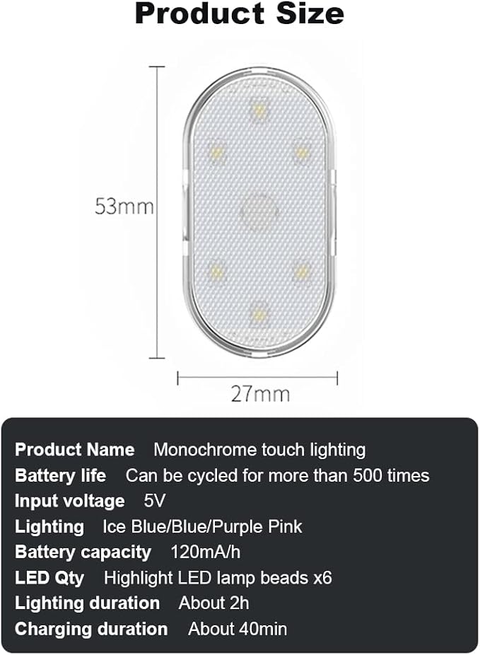 【雰囲気を加える】車内 LEDライトはタッチセンサースイッチ設計を採用し、ワンタッチで点灯し、車内を照らし、単調で薄暗い車内に高級感を加え、夜はワンタッチ遠近照明でロマンチックな雰囲気を演出します。説明: