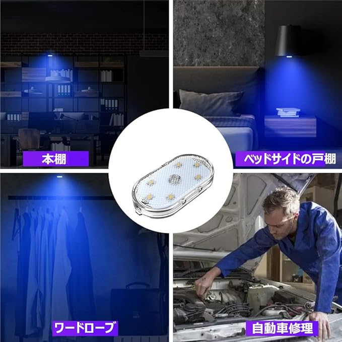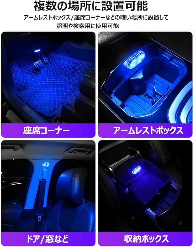 【多目的】ワイヤレス インテリア LED ライトは、ルーフ、アームレスト ボックス、カップ ホルダー スロット、グローブ ボックス、トランク、ドア、シート コーナーなどに適しています。