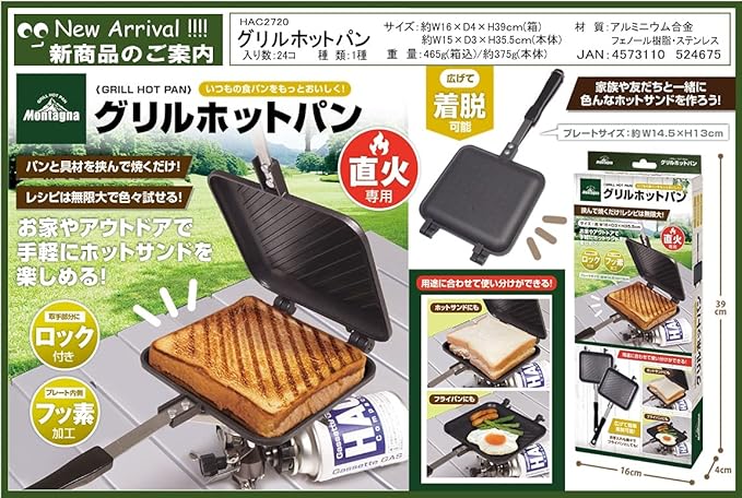 キャンプは勿論、家庭でもおいしいホットサンドが簡単に作れます。