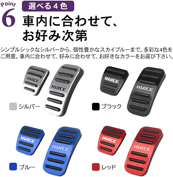 SAWAKAKI ハイエース 200系に専用設計 1型~6型 ロゴ付き アルミアクセルペダル ブレーキペダルカバー 2個セット(ブラック)