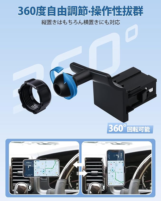 Cartist トヨタ ハイエース 200系 4型/5/6型 専用 スマートフォン スマホ ホルダー 携帯ホルダー スマホスタンド 片手操作 360度回転 車載ホルダー 固定 取付簡単