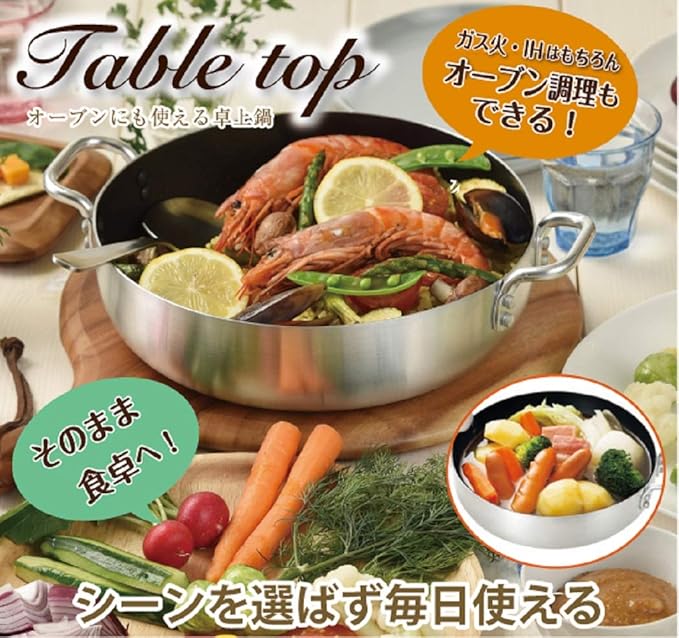 パール金属 両手鍋 シルバー 22cm オーブンにも使える卓上鍋 テーブルトップ HB-3964