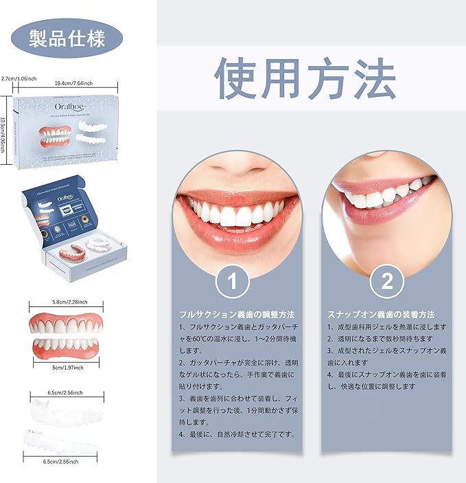 上下セット: 上顎と下顎の両方に対応する入れ歯セットで、自然な見た目を提供します。
