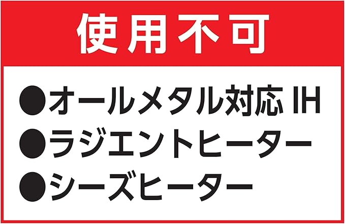 オールメタル対応のIHクッキングヒーター・ラジエントヒーター・シーズヒーターには使用できません。