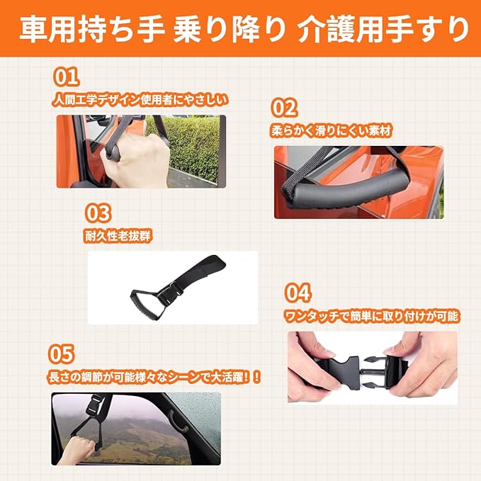【安全で実用】当社の補助ハンドルは、お年寄りや子供のために設計されたスマートな安全補助ツールです。車の乗り降りや乗車時に安定感を持たせ、転倒やけがを防ぐために効果的に彼らをサポートします。