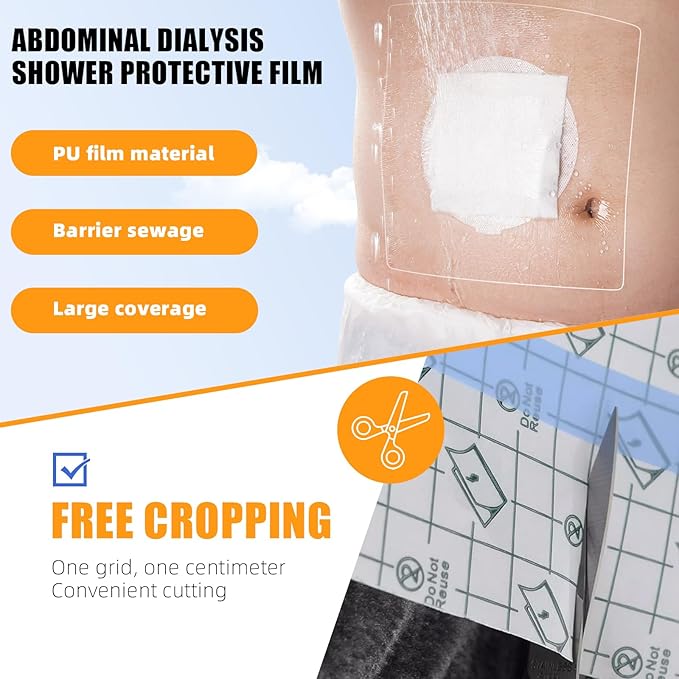 CMD 腹部防水フィルム 腹膜透析患者 透明 防水フィルムロール 術後の傷防水 保護 粘着性 傷防水フィルム 入浴用 防水カテーテルウォーターバリア 看護用品 防水テープ 男女兼用 (20x20cm、60枚入り)