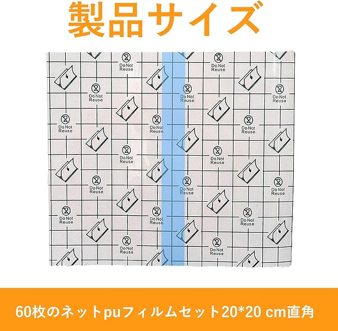 【透明フィルムセット内容】防水フィルム サイズ A:20x20cm/60枚入、B:5x5cm/50枚+10x10cm/50枚+10cmx10m/1巻、厚さわずか0.1mmのPU材料製フィルムは、使い捨て仕様で優しいケアを提供し、感染の心配なく安全に使用できます。