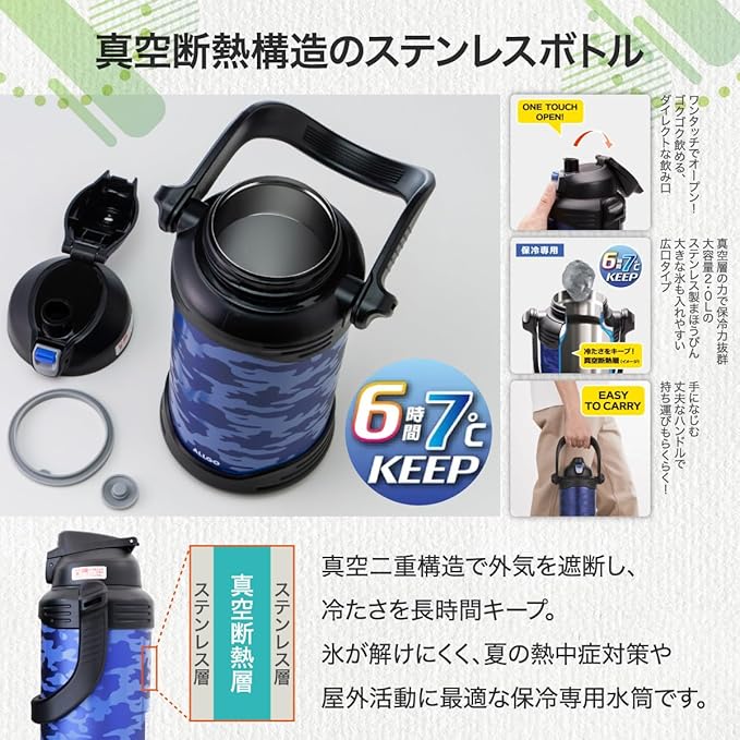 【広口で氷も入れやすい口径70mm設計】 口径が広く、氷も楽に投入可能。洗いやすく、清潔に保てるステンレス製魔法瓶。部活・運動会・BBQに便利!