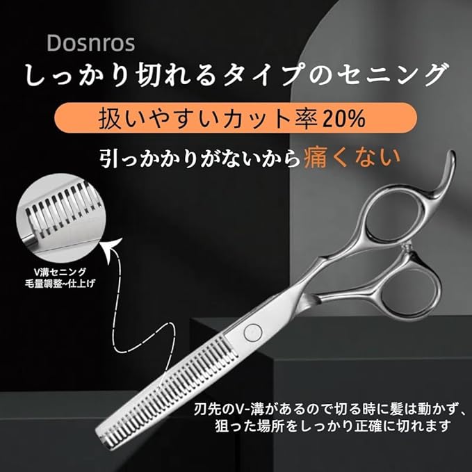 Dosnrosスキバサミ 20% セニング ヘアカット シザー 毛量調整 散髪はさみ すきばさみ 痛くない 前髪 カット 散髪はさみ ステンレス製 髪切りハサミ セルフカット