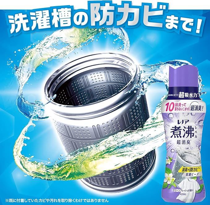 衣類の煮沸レベル消臭*1 洗濯槽の防カビ*2 まで! レノア 超消臭 煮沸レベル消臭 抗菌ビーズ 消臭+防カビ クリーンフレッシュ