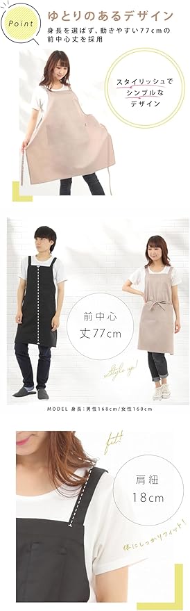 ✅【H型エプロンと三角巾のセット】肩こり着崩れの心配なしのH型エプロンは、スタイリッシュでゆとりのあるデザインのため、体型や年齢を問わず、肩に優しくすっきりと着られます。※男性モデルの身長は168㎝、女性モデルの身長は160㎝です。着用イメージは画像を参考にしてください。
