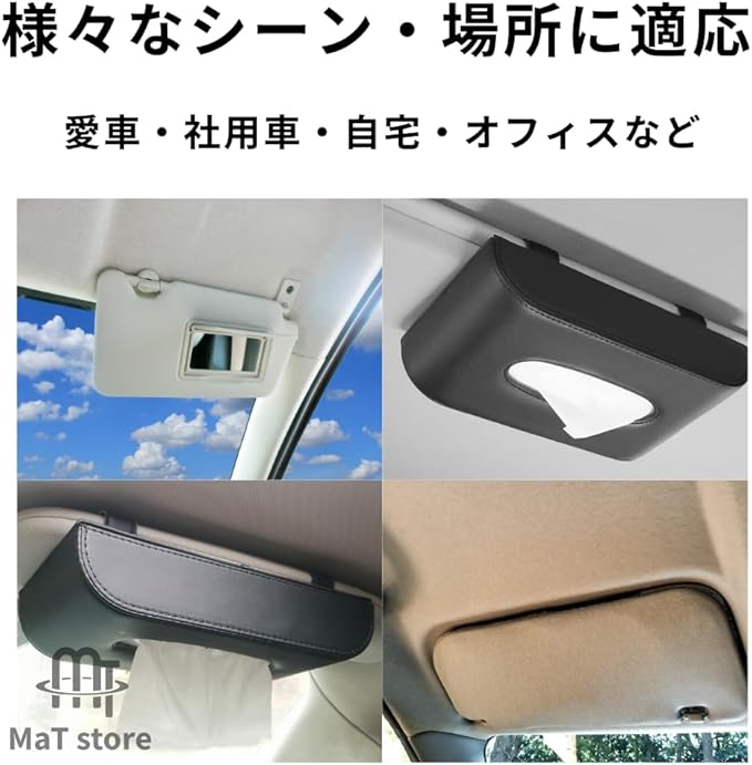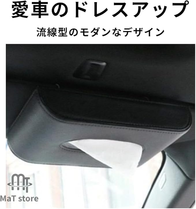 MaT store 車用 ティッシュケース サンバイザー 革 PUレザー カー用品 カバー ブラック