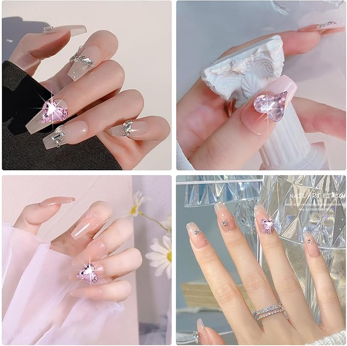 【高品質素材】ネイルストーンは樹脂製で、変形しにくいです。光沢があり、長期間使用できます。ネイルストーンの裏面は合金で包まれており、爪の表面によくフィットすることができます