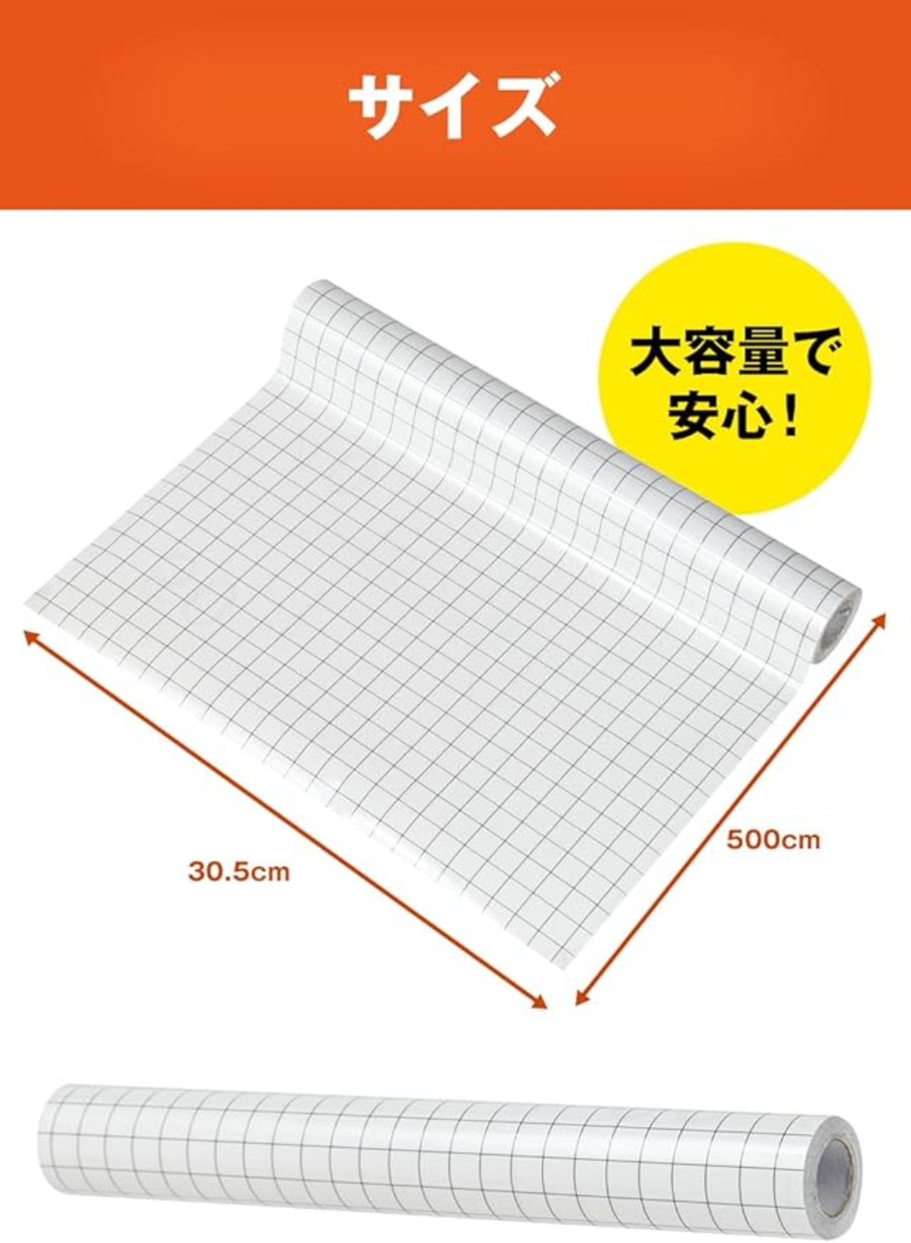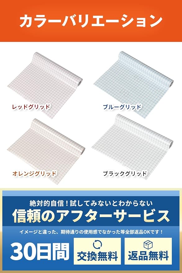 【貼りやすい グリッド線付き】 転写シート カッティング用 見やすい アプリケーションシート 透明フィルム 剥がしやすい マス目 DIY 装飾 デザイン 30.5cm 500cm (ブラックグリッド)