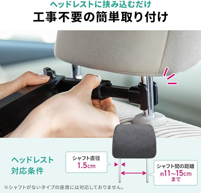 後部座席 で使用できる ヘッドレスト 取り付け タイプの 車載ホルダー です。