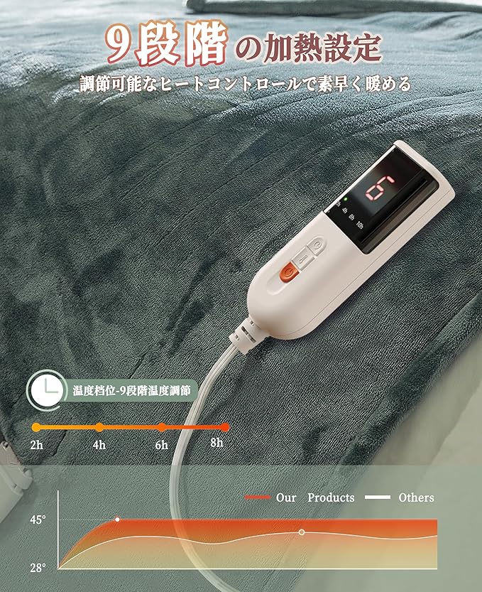 【インテリジェントな温度調整】:ボタン1つで9段階の温度設定が可能。 電気毛布の温度を自由に設定できます。この電気ブランケット、絶縁毛布カバー全体を通る高品質のヒーターワイヤーを装備しています。