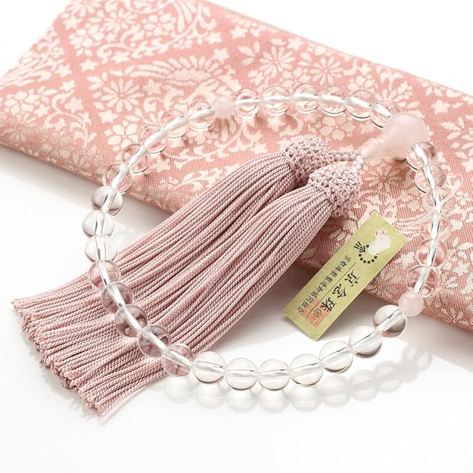 念珠ドットコム 数珠 女性用 本水晶 ローズクォーツ 約8ミリ 正絹房 数珠袋付き すべての宗派で使える 8mm 略式数珠 京念珠