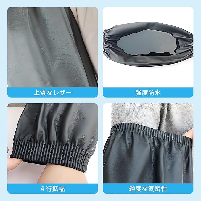 [Doyime] 防水アームカバー (2セット) 作業用腕カバー 撥水袖カバー 汚れ防止 PUレザー袖カフス 家庭用 園芸作業 漁業 カキ養殖 陶芸 酒造 農作業 洗車用 黒色 紺色