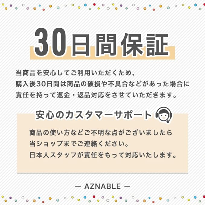 【安心の30日保証】購入後30日間は返品・返金のご対応をさせて頂きますので、安心してお買い求めください。万が一商品の初期不良・不具合や破損等ございましたら、大変お手数ではございますが、Amazonカスタマーサポートのメールアドレス宛にお問い合わせください。その際は誠意を持ってご対応をさせていただきます。